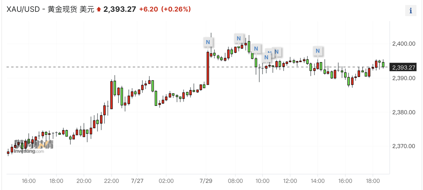 金价上周经历了较大波动。7月25日,现货金价暴跌近33美元,一度跌破2360美元/盎司。