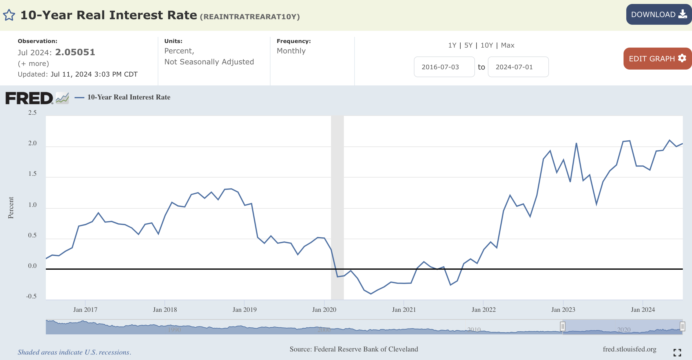 事实上,随着美国通胀的持续走低,10年期债券实际收益率已从去年7月的1%附近上升至2.05%。这也意味着,尽管近期美联储维持利率不变,但实际利率却在持续走升,货币环境实则在收紧,而经济和就业数据却在趋于缓和。