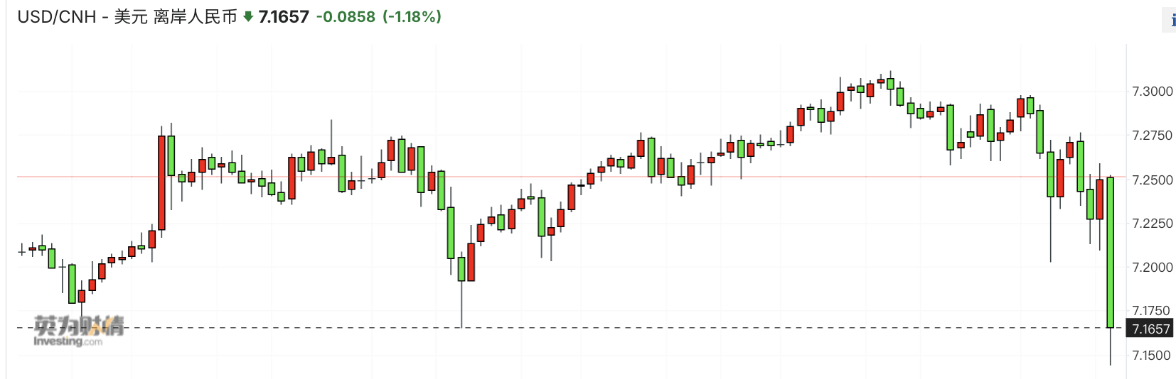 美元指数在7月下跌了0.1%,日元领涨,日元的强势已经波及其他亚洲货币。罗伯逊对记者称,7月,马来西亚林吉特和泰铢继日元之后涨幅较大,人民币、新元、印尼卢比和韩元均从近期低点回升。8月2日,离岸人民币对美元大涨近700点,当日收于7.1657。