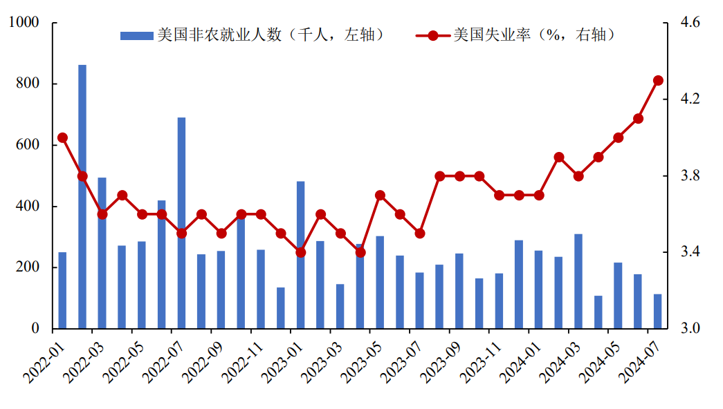 图1.美国非农就业人数和失业率走势