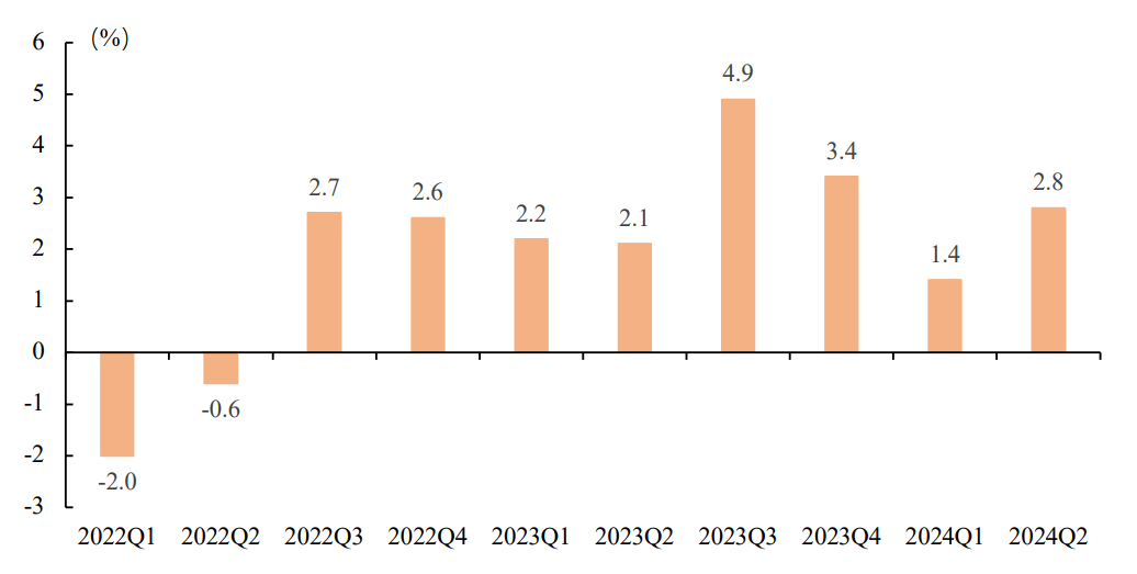 新冠疫情以来,市场关于美国经济衰退的判断尚未得到证实。2022年前两个季度,美国实际GDP环比出现负增长,开始引发市场对美国经济陷入技术性衰退的担忧。然而,美国经济自2022年三季度以来一直保持正增长,显示出较强韧性。2024年一季度,美国实际GDP环比增速为1.4%,为2022年三季度以来最低增速,再次引发市场对美国经济陷入衰退的担忧。2024年二季度,美国实际GDP环比增速大幅反弹至2.8%,显示出美国经济增长仍充满韧性(见图3)。8月5日前公布的美国经济数据不及预期引发市场交易美国经济衰退,但8月5日后公布的美国经济数据回暖表明作出美国经济衰退的判断似乎为时尚早。