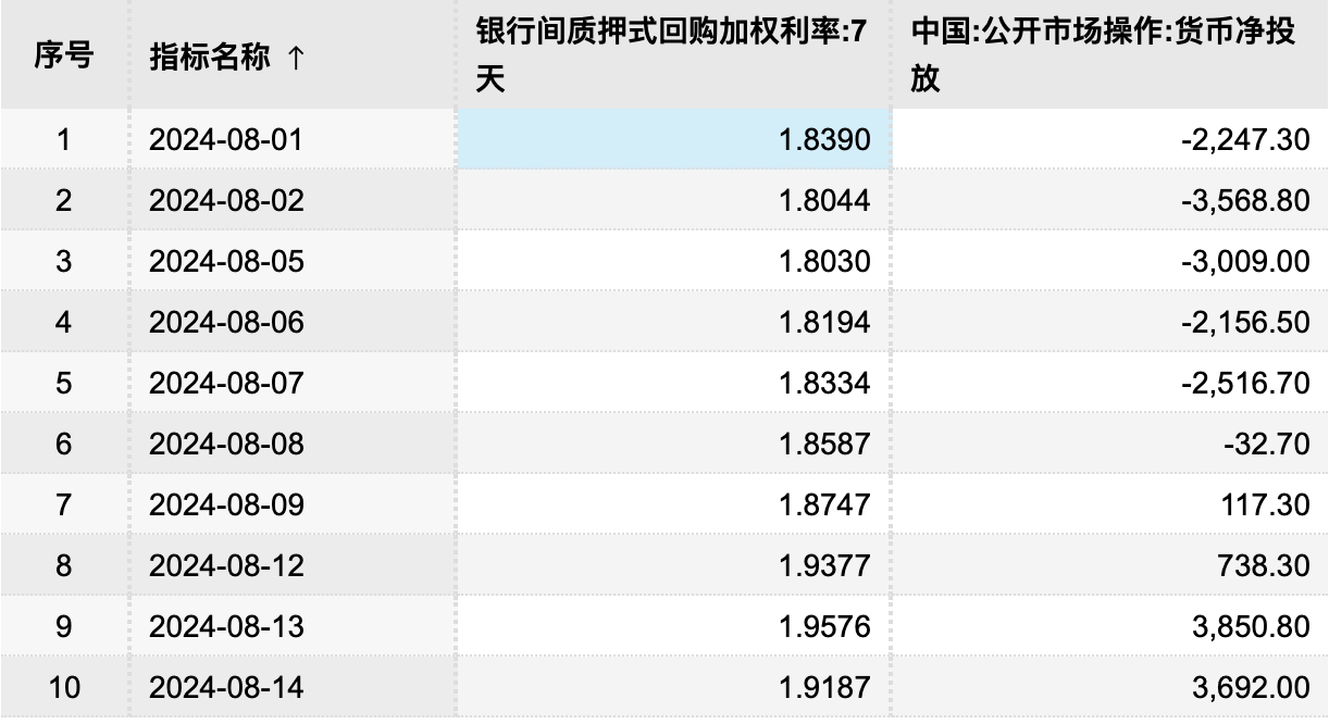 以8月为例,8月1日至7日,控制DR007下行幅度;近几日,DR007较为明显地高于政策利率时,央行又实施大额逆回购。13日、14日、15日分别开展3857亿元、3692亿元、5777亿元逆回购操作。