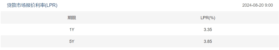 2024-08-20 09:07:39 【XM外汇跟单官网资讯】8月LPR报价出炉:1年期和5年期利率均维持不变 中国人民银行授权全国银行间同业拆借中心公布,2024年8月20日贷款市场报价利率(LPR)为:1年期LPR为3.35%,5年期以上LPR为3.85%。以上LPR在下一次发布LPR之前有效。