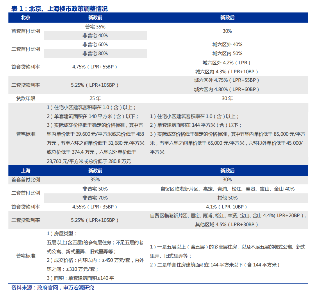 临近年末,北京、上海楼市政策正式迎来大松绑,涉及降低首付比例、延长贷款期限、优化普宅认定标准等。