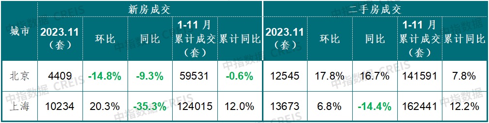 中指研究院数据显示,今年5月以来,北京二手住宅价格环比持续下跌;前11个月新建商品住宅累计成交(5.95万套)同比下降0.6%,其中11月新房成交4409套,环比下降14.8%,连续两个月环比下降,市场活跃度回落。二手房市场仍保持一定活跃度,前11个月累计成交14.2万套,同比增长7.8%,,其中11月二手房成交(12545套)环比增长17.8%,同比增长16.7%。