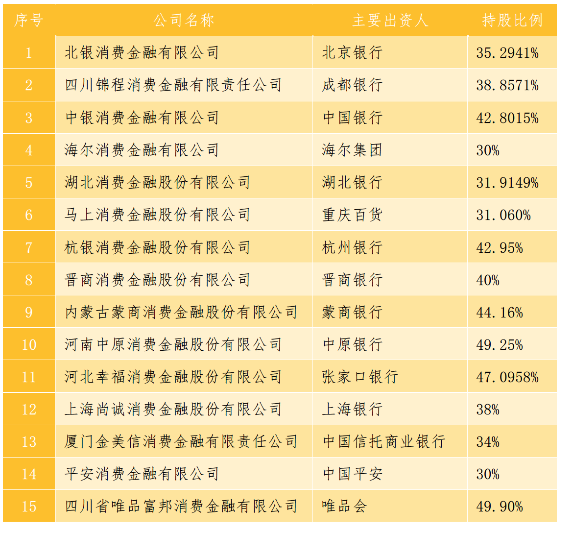 《征求意见稿》将消费金融公司主要出资人持股比例要求由不低于30%提高至不低于50%。