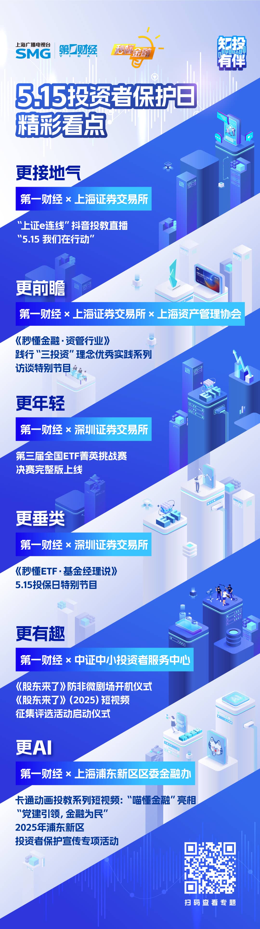 值得注意的是,此次主题月活动更加关注普惠金融、更注重投资认知的加深,打破传统单向传播模式,构建第一财经“内容共创、场景共融、生态共享”的新型投教体系。未来,第一财经投资者教育服务将变得更加有趣、生动,也会使用更多AI技术进行赋能,持续深化“科技+金融+文化”的内容融合创新,为资本市场高质量发展筑牢投资者保护屏障。