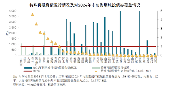 “本轮地方政府发行特殊再融资债未来也是由地方政府进行偿还。从2023年10月至12月中旬,本轮特殊再融资债发行量约为1.39万亿元,个别省份发行金额较大,债务余额超出了全年的债务限额,财政部应该从省份之间调剂了债务限额,但整体上将地方债务总额控制在全国限额范围内。”王雷称。