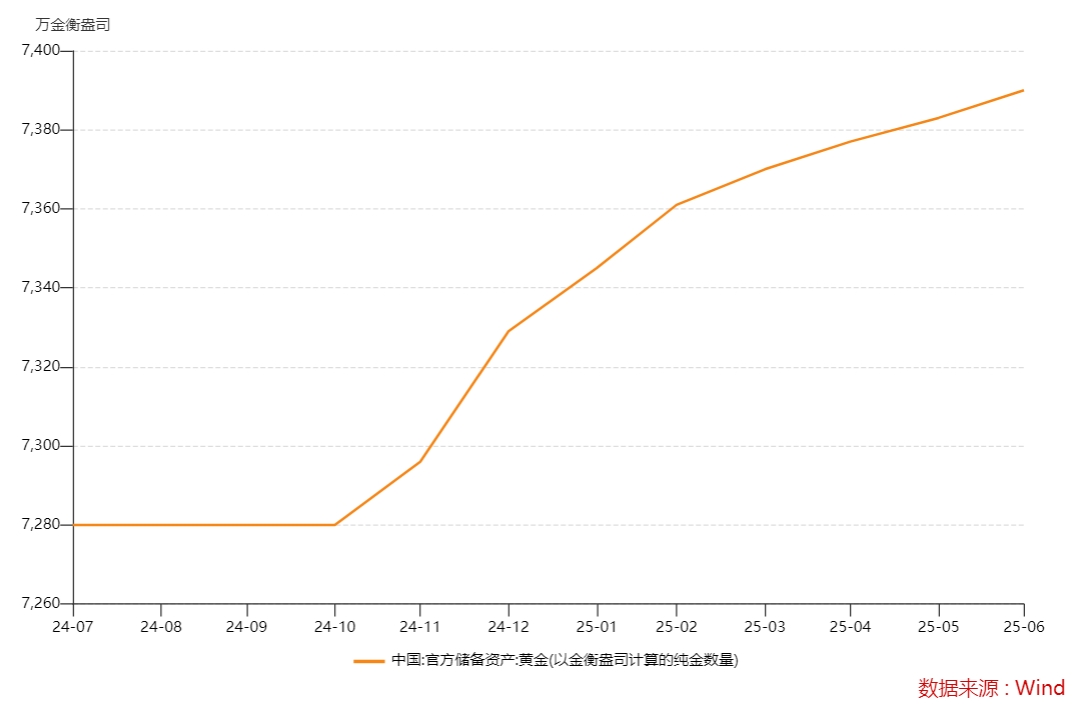 同日,国家外汇管理局发布数据显示,6月末我国黄金储备为7390万盎司,环比增加7万盎司。