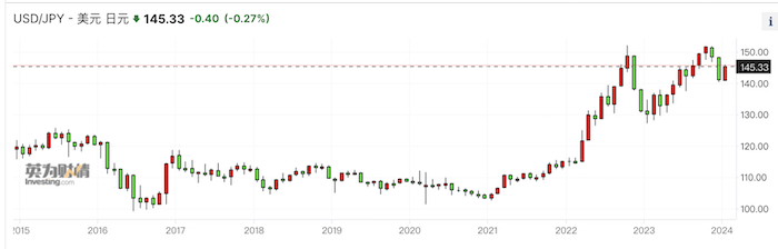美国降息预期从去年12月开始不断升温,日元对美元有所反弹,但2024年1月开始美元指数回升。截至北京时间2014年1月11日20:20,美元/日元报145.43。