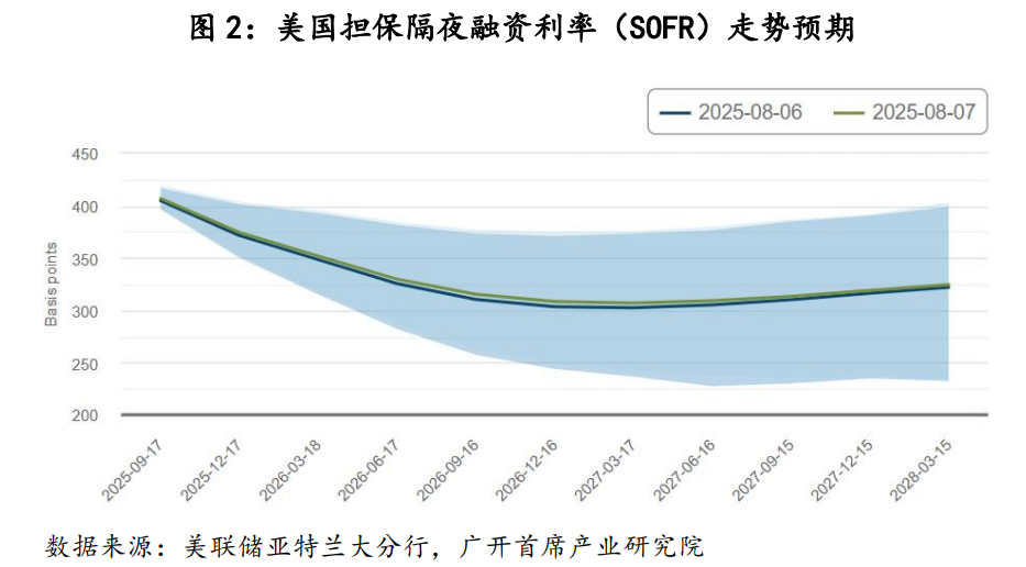 2024年9至12月,美联储连续三次降息,累计降幅100个基点。然而,今年初以来,美联储降息进程被摁下了暂停键,联邦基金利率长时间徘徊于4.25%-4.5%区间,折射出当前美联储在降息问题上正面临“两难”:预防经济衰退优先,还是防止通胀反弹优先。近期,随着内外环境出现一系列重大变化,美联储由鹰向鸽转变的信号逐渐增强。市场普遍预测,美联储最早9月就有可能重新开启降息进程。