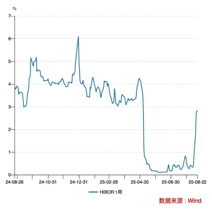 第一财经记者注意到,今年,香港同业拆借利率(HIBOR)整体水平并不高。今年6月,因资金大量流入,港元拆息(HIBOR)一度跌至0.05%以下。银行体系港元结余暴增至逾1200亿港元,短期融资成本极低。8月,HIBOR虽然快速回升,但目前也仅2.8%左右。