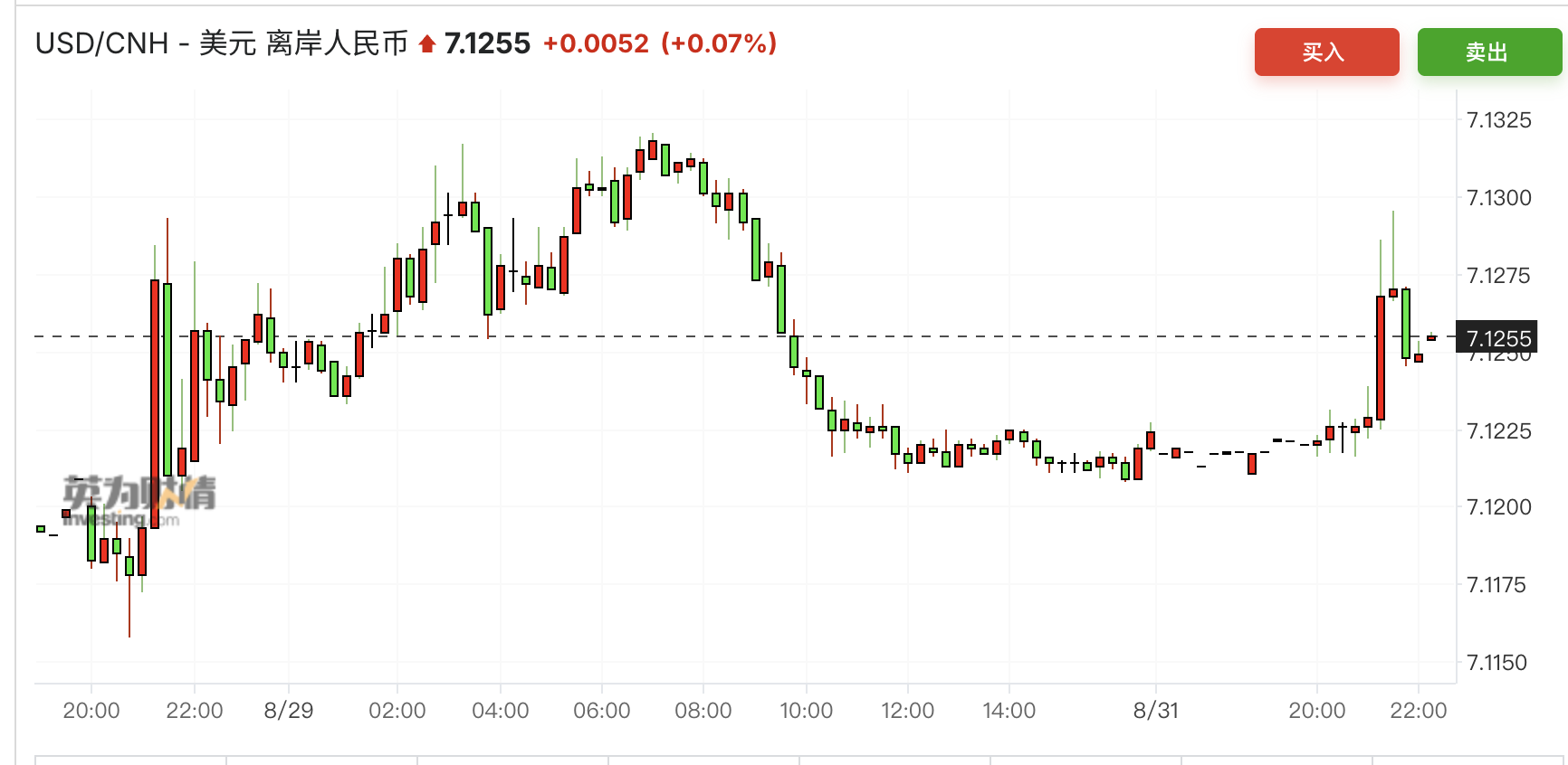 国际对冲基金此前持续流入中国股市,长线投资者也有所加仓,人民币汇率从8月初的约7.2逐渐升值至7.13。