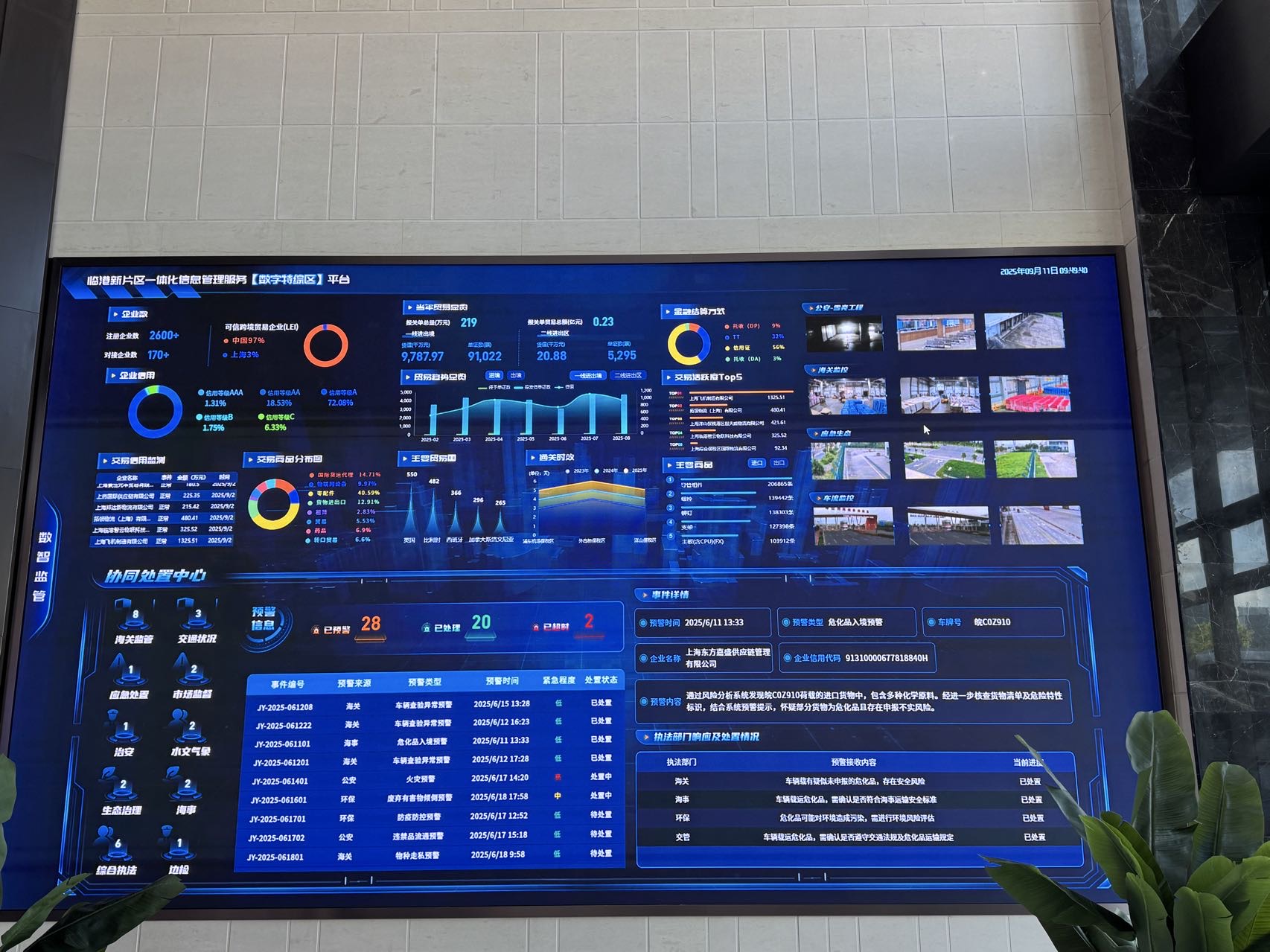 临港新片区管委会综保处处长林益松指着最大的那块屏幕告诉大家,这是8月20日正式推出的“数字综保区”,它实现了几个突破:一是搭建数据交互共享平台,对接不同监管部门数据,解决跨部门协同监管需求;二是搭建企业服务端,基于大模型运用,为企业提供智慧政务办理、智慧关务管理、智慧统计分析,力求实现业务流程全程可视化;三是完善智慧监管平台,实现全链路货物流跟踪,力求实现“管得住”与“放得开”有机统一;四是基于新业态新场景,打通跨部门数据共享和运用,实现协同创新。