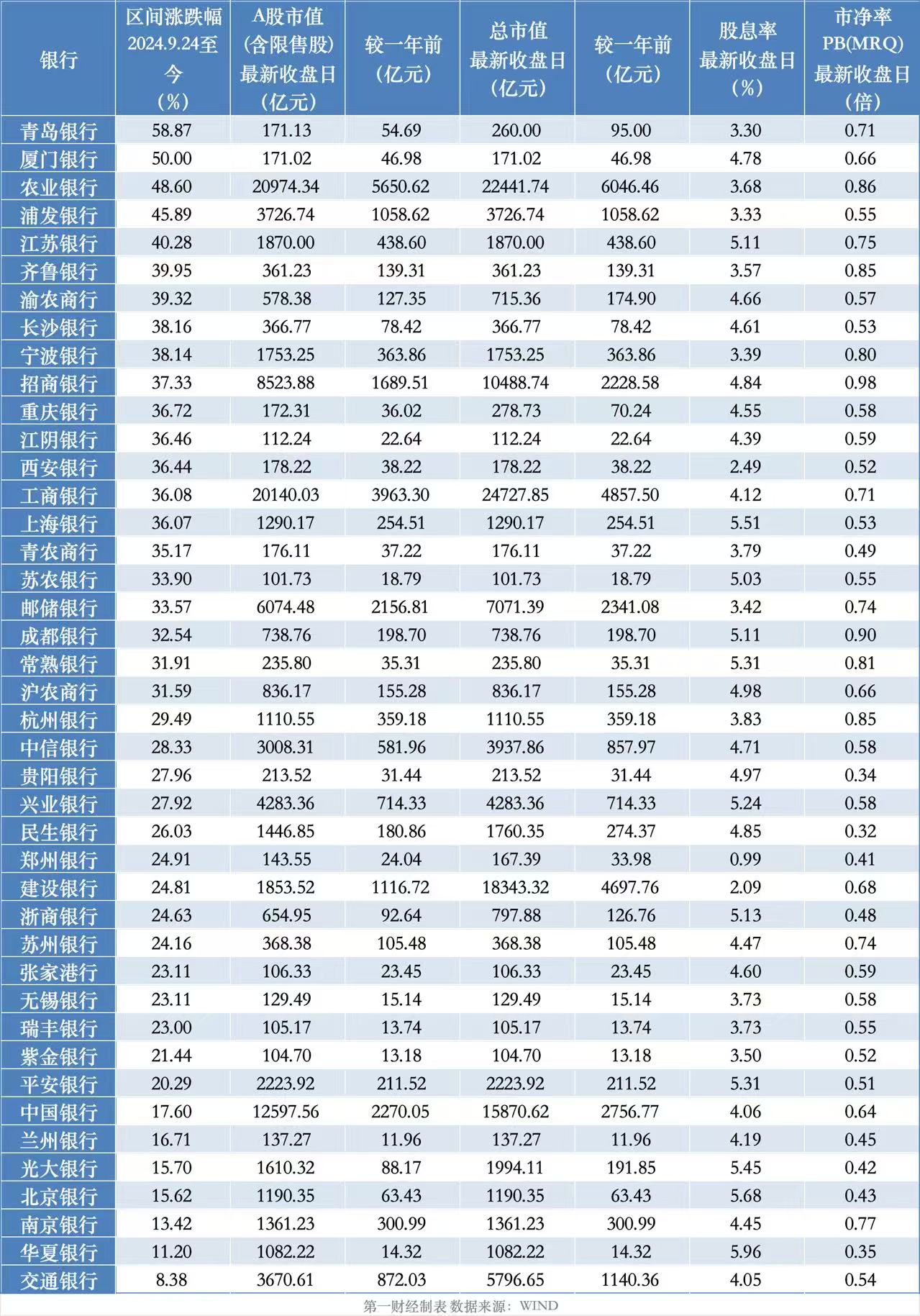 【XM外汇跟单官网资讯】银行股在“9·24行情”这一年:涨幅最低8%最高59%,总市值涨了3万多亿
