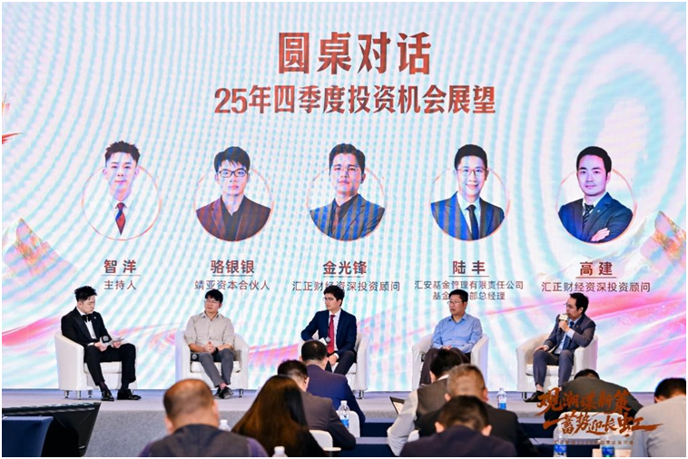 进入圆桌对话环节,靖亚资本合伙人骆银银、汇安基金管理有限责任公司基金投资部总经理陆丰、汇正财经资深投顾金光锋、汇正财经资深投顾高建围绕第四季度投资者机会,从从宏观到实操,在一二级视角碰撞下,拆解实操策略。