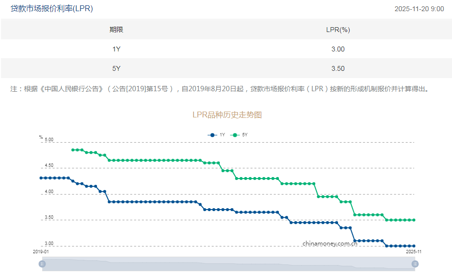 2025-11-20 09:01:19 【XM外汇跟单官网资讯】11月LPR报价出炉:5年期和1年期利率均维持不变 据央行官网,11月贷款市场报价利率(LPR)报价出炉:5年期以上LPR为3.5%,上月为3.5%。1年期LPR为3%,上月为3%。