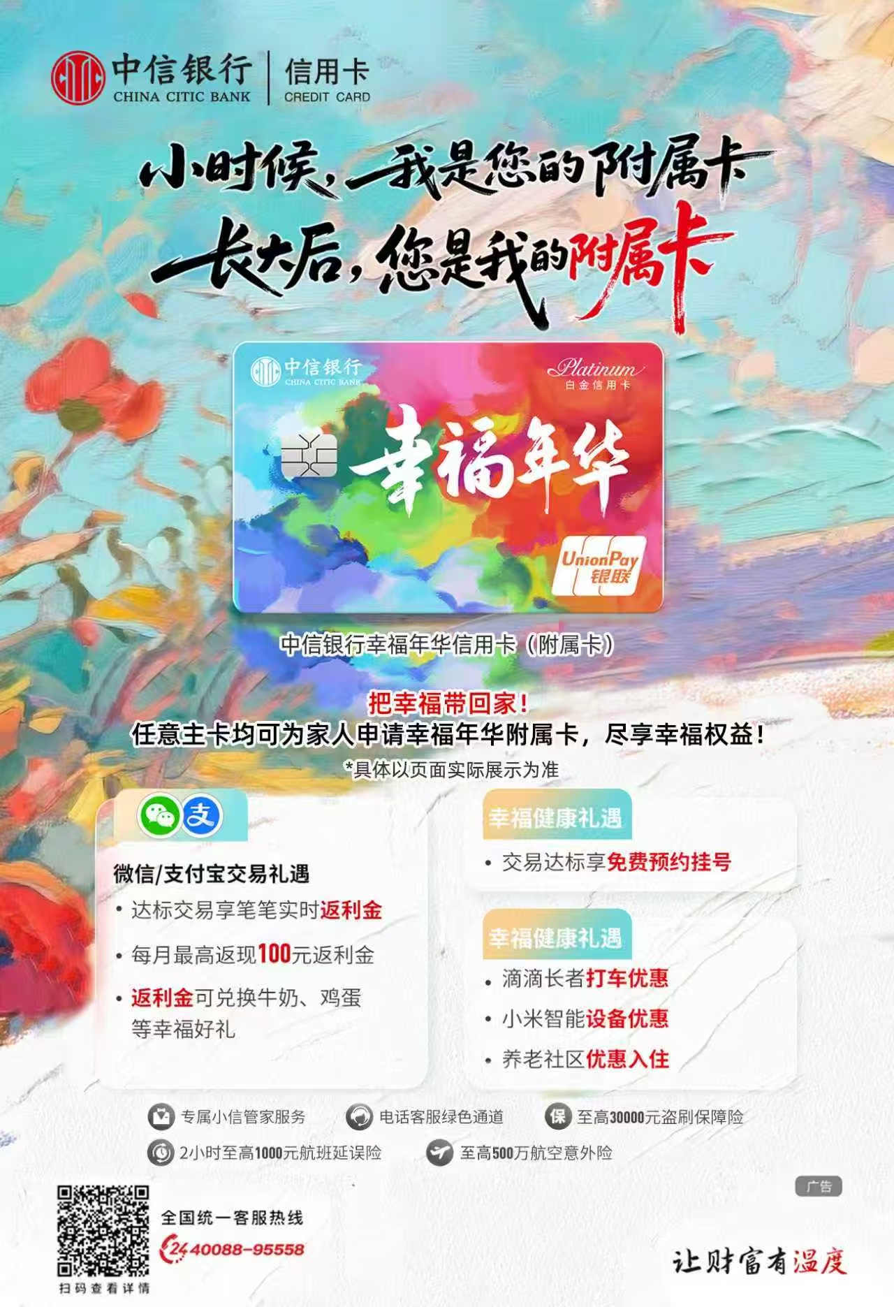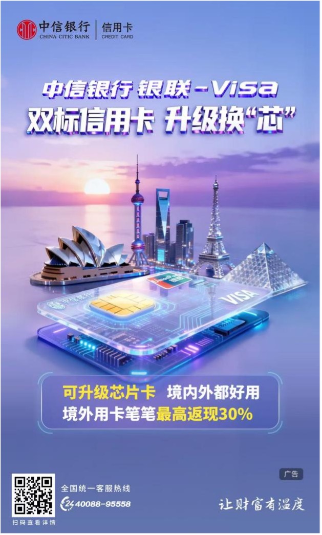 未来,中信银行信用卡持续围绕国家扩大内需促进消费的政策指引、始终坚守“以客户为中心”的核心经营理念,继续积极发挥信用卡促进消费、扩大内需的优势,以科技创新打破地域边界,以场景生态覆盖全域需求,不断为消费者带来有力度、有温度的福利优惠,传递“让财富有温度”的品牌主张。