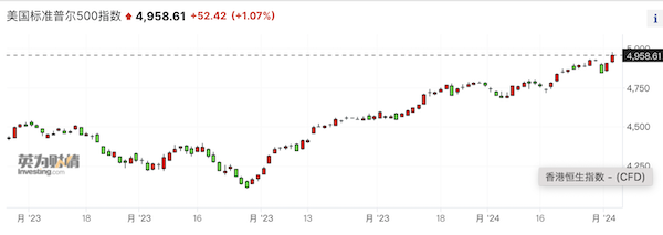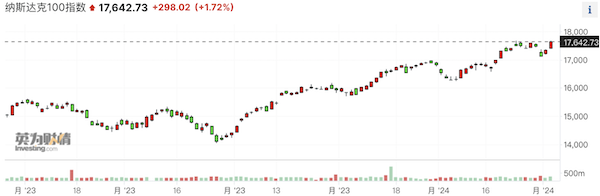 美股在过去两周持续刷新历史新高。去年四季度,高盛曾给予标普500指数2024年目标价5100点,但如今来看,似乎唾手可得,同时纳斯达克100指数也朝着18000点大关迈进。
