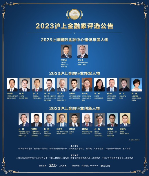 2月29日,2023“沪上金融家”评选结果揭晓,22位上海金融英才分获“2023上海国际金融中心建设年度人物”“2023沪上金融行业领军人物”“2023沪上金融行业创新人物”等奖项,并首次颁发“沪上金融家评选·卓越贡献奖”。