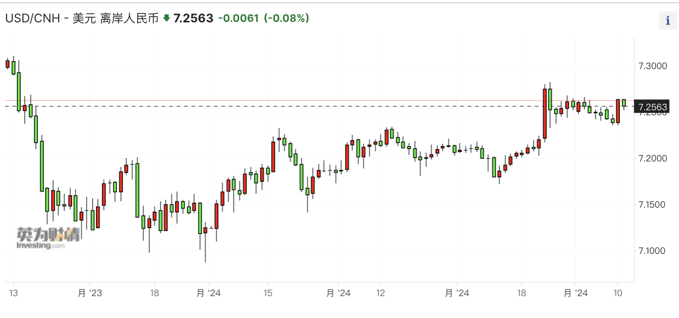 在美国CPI数据公布后,隔夜离岸人民币开始走弱,跌破7.26关口。不过,即使在美元指数大幅走强的背景下,4月11日人民币中间价仍稳定在7.1以下,这也令交易员并不倾向于继续做空。