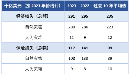瑞再研究院近日发布的数据显示,2023年全球发生的灾害事件多达142起,创下历史新高,造成2800亿美元的经济损失。其中大多数为中等严重程度灾害,其损失在10亿至50亿美元之间。2023年至少发生了30起此类事件,显著高于前十年的平均值(17起)。