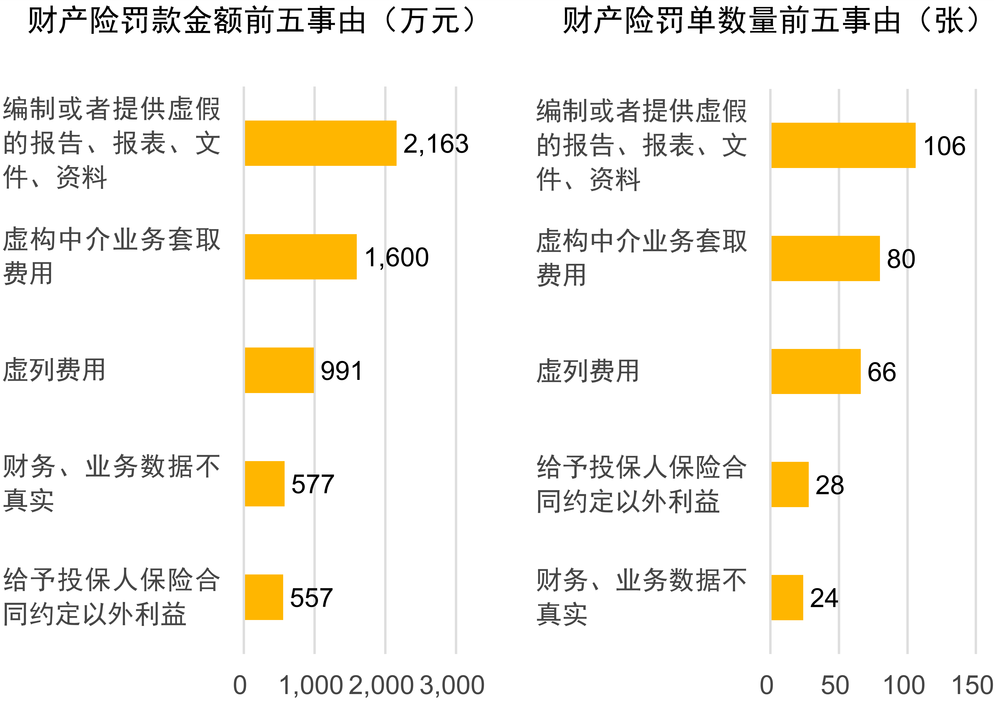 从处罚事由来看,无论是财产险还是人身险公司,编制或者提供虚假的报告、报表、文件、资料都是重要的处罚事由之一,分列财产险和人身险公司第一季度罚款金额的第一和第二,由于这个原因上述两类保险机构一季度共被罚款2556万元;虚列费用也同时在两类公司处罚事由中分别位列第三及第四。