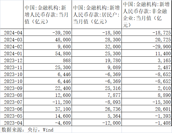 从单月情况来看,4月人民币存款减少了3.92万亿元,其中,居民存款同比多减6500亿元,企业存款同比多减1.73万亿元,财政性存款同比少增约4000亿元。