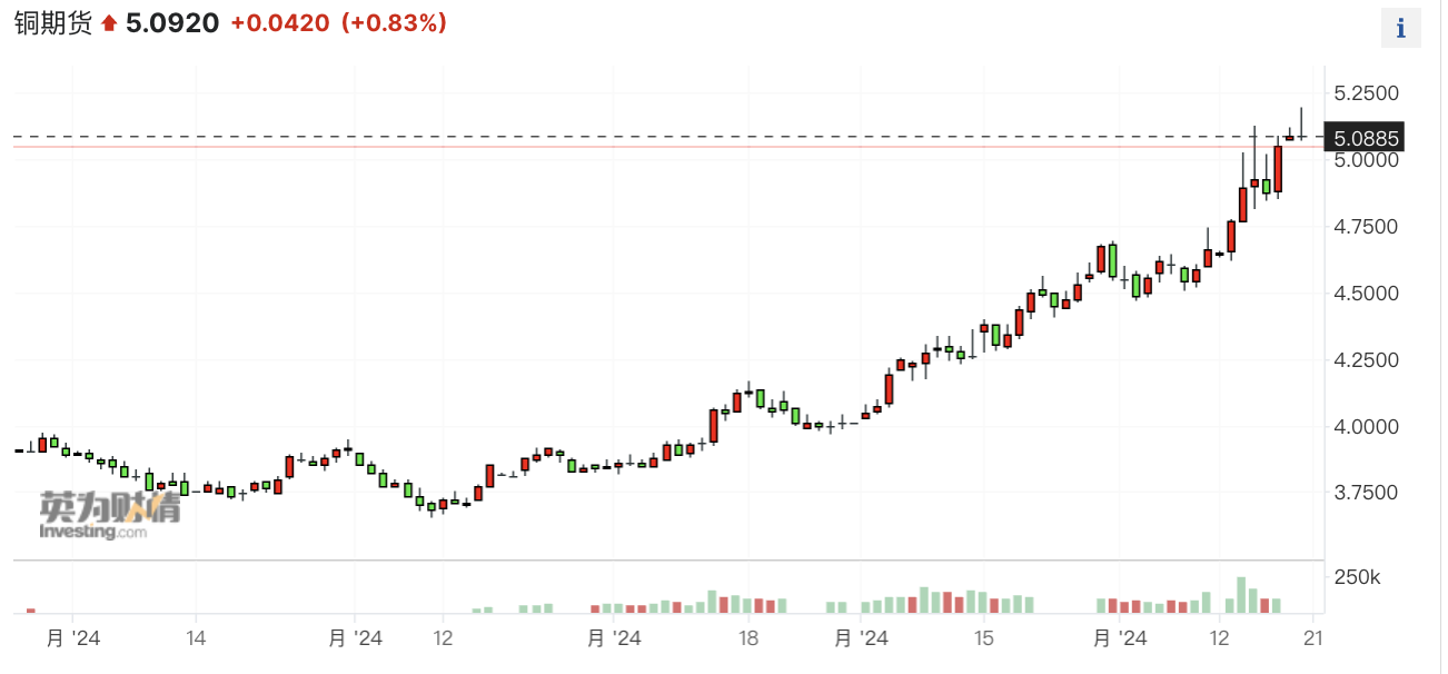 上周COMEX期铜价格突破5美元/磅大关,上周三(15日)盘中最高涨至5.1280美元/磅,创下历史新高,当周累计上涨9.01%。在市场人士看来,外盘逼空是主因。