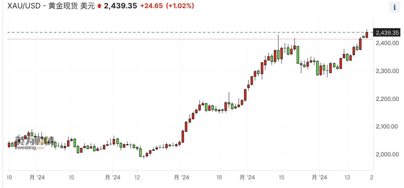 20日,黄金再破历史新高,截至北京时间当日14:10,现货黄金价格报2448美元/盎司。年内,金价涨幅已近20%。