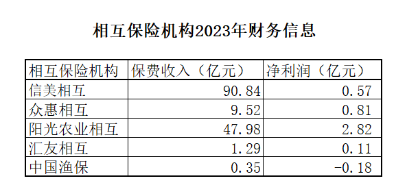 从这五家保险机构2023年的财务数据来看,虽然保费规模都不大,但其中的多家2023年都实现了保费的双位数增长,推动相互保险在我国保险市场的市场份额增至了0.29%。而从盈利能力来看,除了去年2月刚刚成立的中国渔业互助保险社,其余四家2023年均实现了盈利,其中信美相互已连续四年盈利。